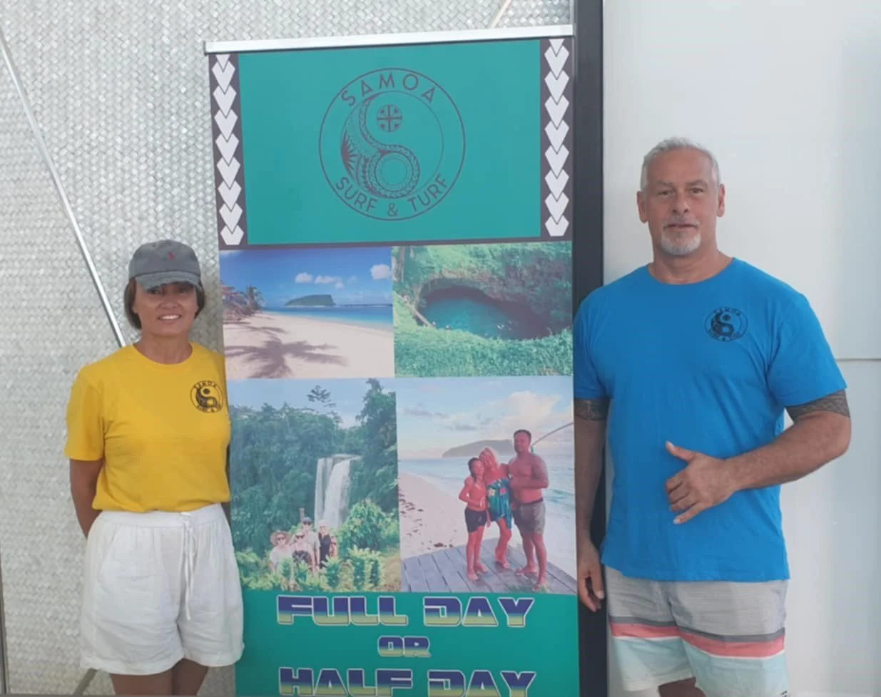 When you exit the gangway, please turn right and continue walking for about 100 meters (approximately 330 feet). After a short and pleasant stroll, you will soon arrive at the designated area where our private tours operate daily. Kindly do not exit the wharf itself, as we are conveniently located directly on the wharf, making it easy for you to find us without any hassle or confusion. We are known as Samoa Surf and Turf Tours, your friendly and knowledgeable guides dedicated to providing fun-filled land and ocean adventures all around beautiful Samoa.